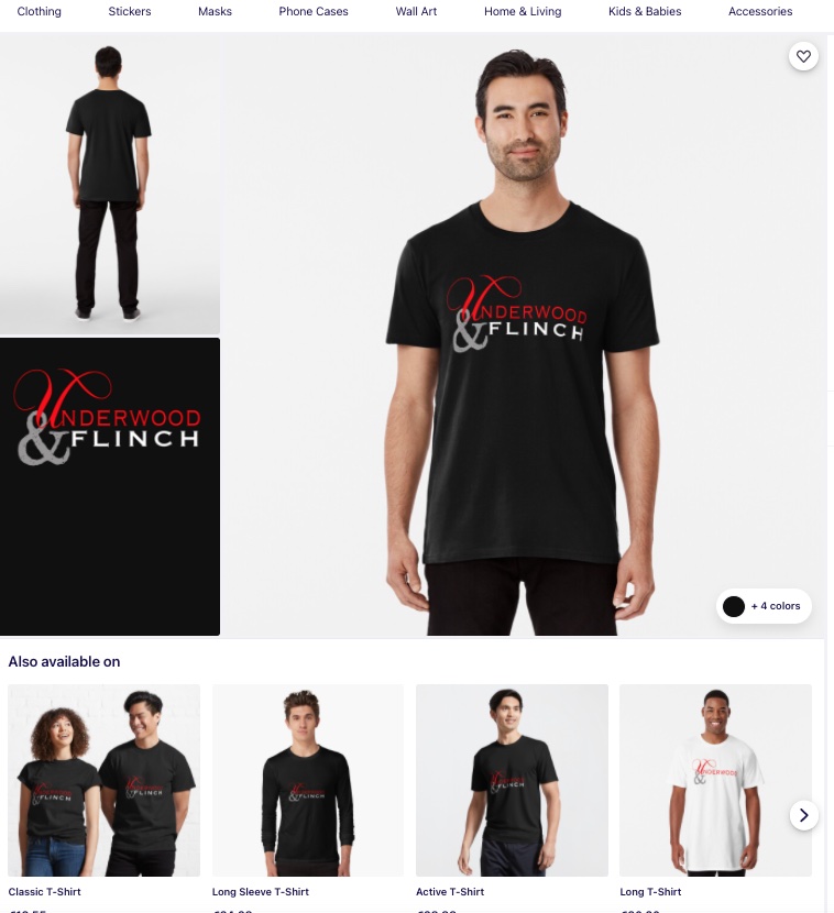 “I say! What a splendid t-shirt!” … is what Underwood might say if he saw any of these items of U&F merch available at my Redbubble store. This design is “UF Classic Book Cover“, based on MJ Hahn’s cover for the 2012 edition of the Underwood and Flinch novel. It’s one of several designs you can find at Redbubble, and these garments are just a few of the tons of items you can find. Hats, bags, shirts, hoodies, bedspreads, shower curtains, button badges (mustn’t forget the badges), there’s something for everyone. So check it out, and get yourself a U&F themed present today – you’re worth it ๐