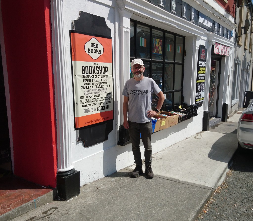 Now, I realise you may not have a significant local landmark where you live. We can’t all have an Eiffel Tower or a Statue of Liberty on our doorstep. But maybe you have a favourite shop, pub, or supermarket where you could take a selfie with your merch? While it may be “boring old Walmart” to you, to other people around the world it’s a completely new thing that they’ve never seen before. For example, here’s me in front of one of my favourite Wexford shops, Red Books in St Peter’s Square …