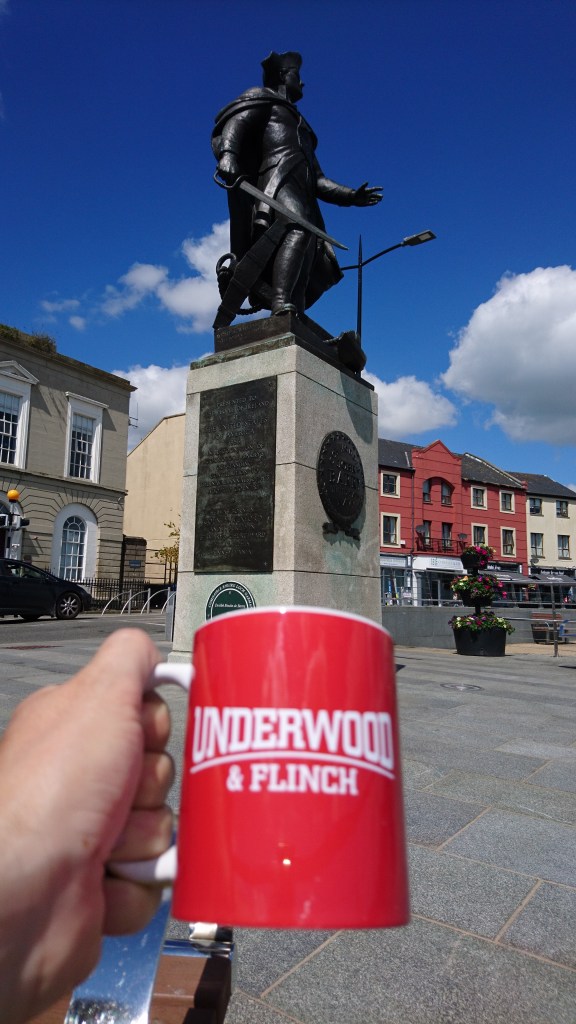 The one on the left is me (modelling one of my U&F tees) with the Pikeman in Wexford Town, and the one on the right is one of my U&F mugs with Admiral John Barry, credited with being the father of the US Navy (he was born in Wexford).